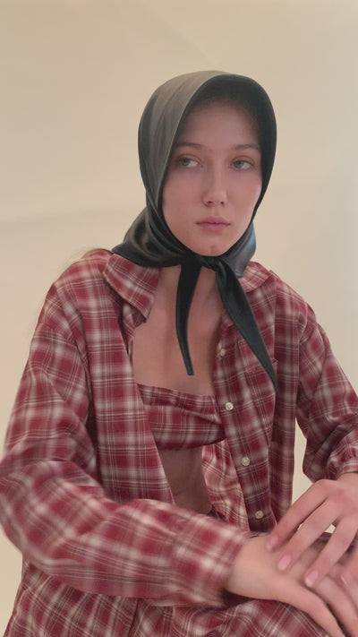 A bonnet made from supple lambskin lined with soft cotton fleece for warmth. Ties under the chin with a face framing brim. Covers the ears and neck. Perfect for windy days and travel.