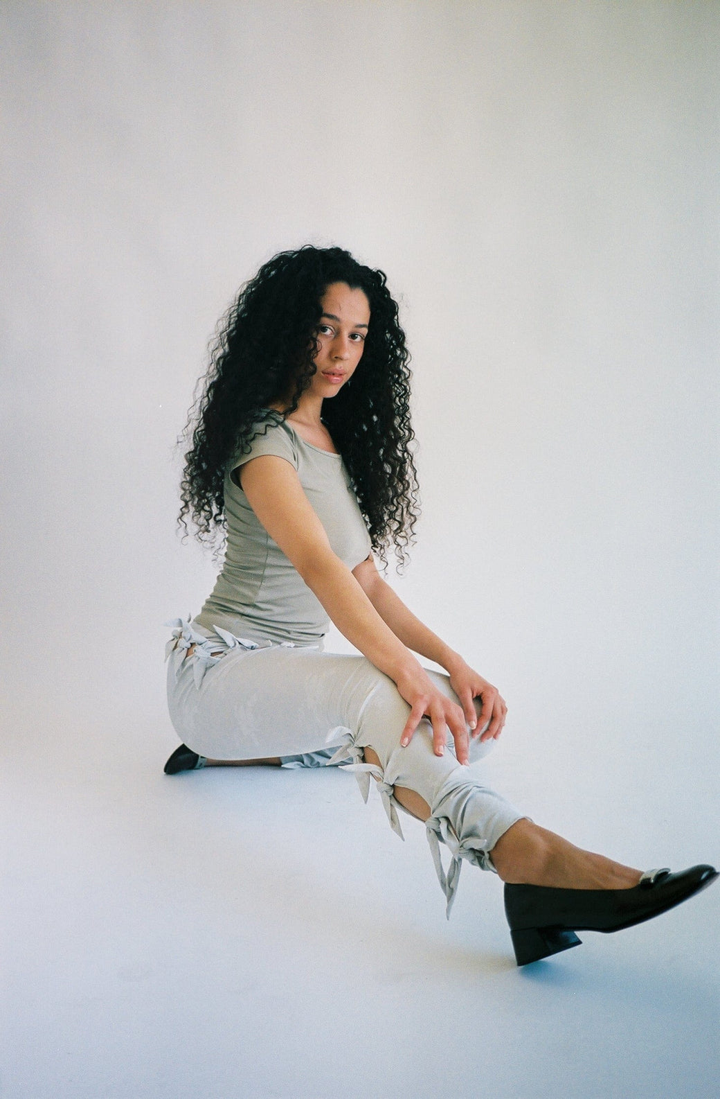 Emma is 5’8” tall and measures 33” bust, 26” waist, and 37” hips and wears S. 92% cotton, 8% elastane. Made in Uzbekistan.