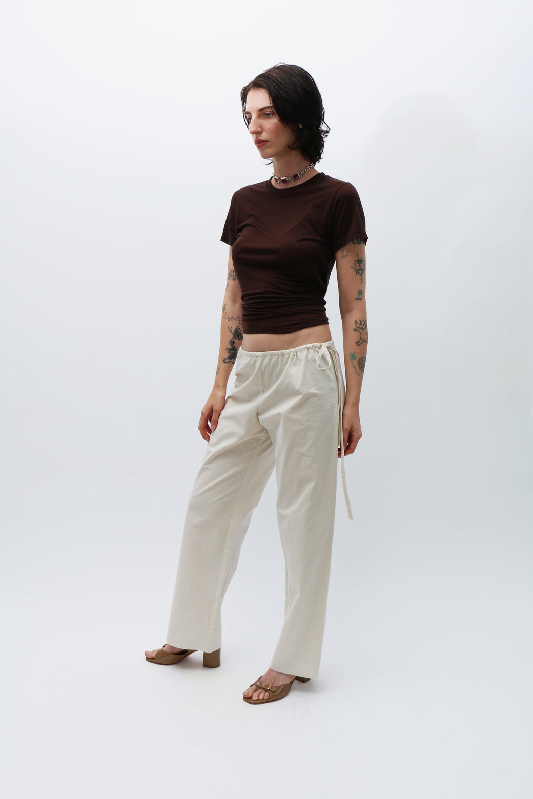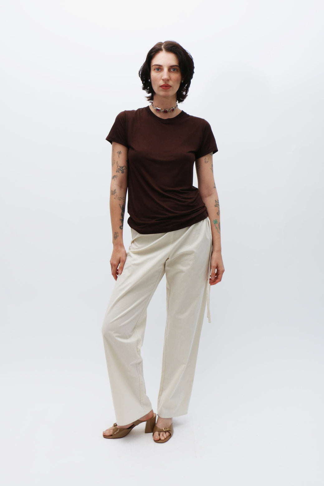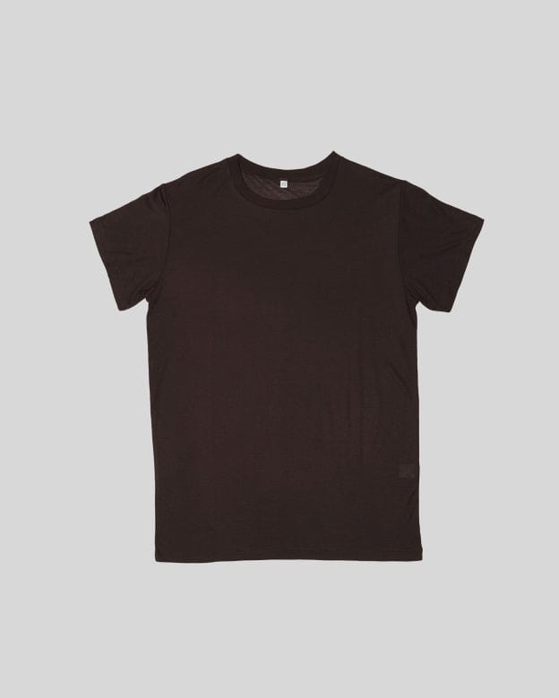 Dark brown crew neck tee. Loose fit, resembling the fit and sheerness of a perfect vintage tee. In jersey bamboo. Soft and semi-sheer. A part of Baserange's core collection.