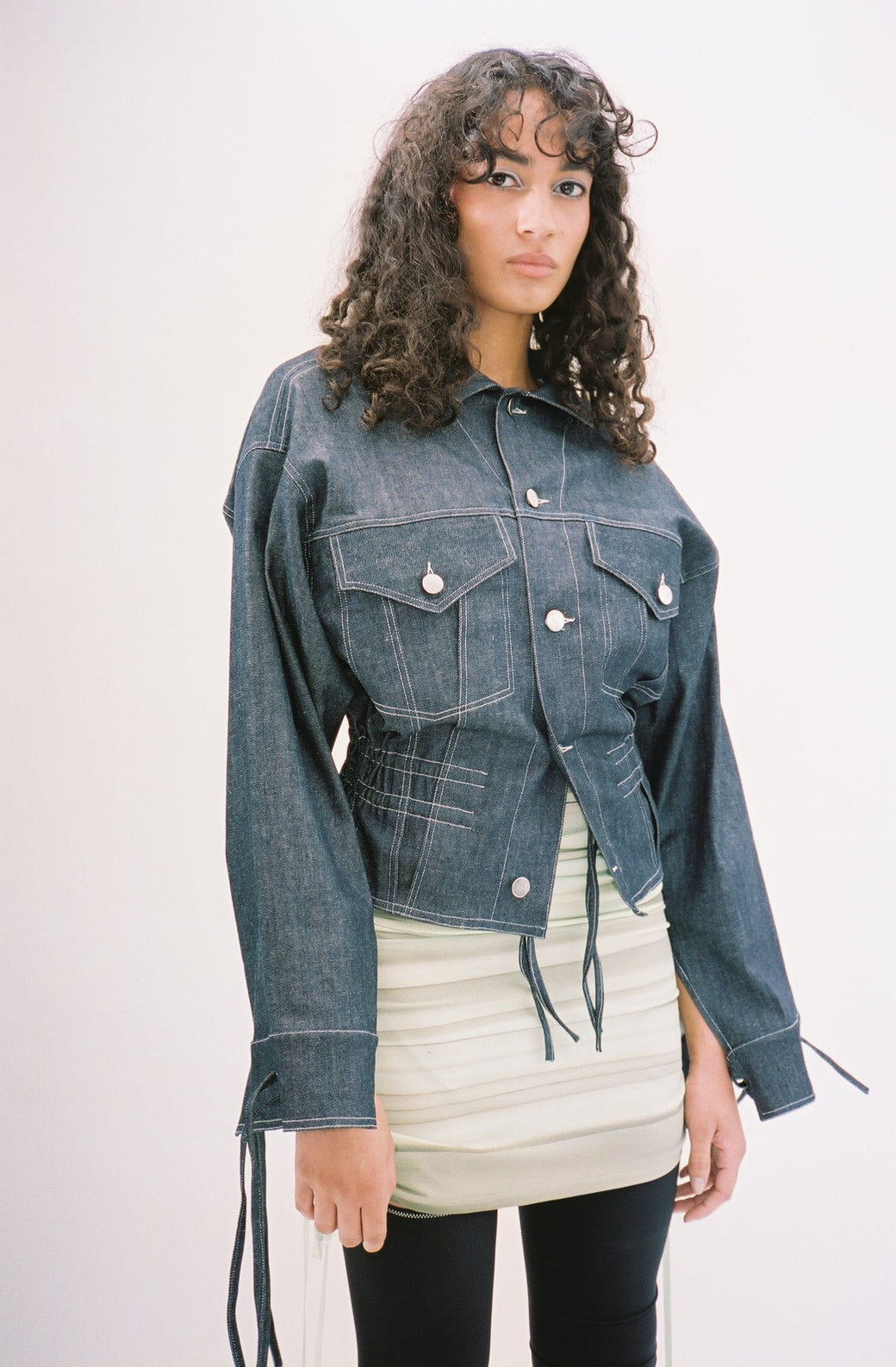 Lucille laid the first stones of her eponymous brand, LUCILLE THIEVRE, in 2019. A collection made in France using deadstock materials sourced from luxury fashion houses. In order to create soulful garments, LUCILLE THIEVRE aims to create a commercial structure as creative and daring as her collections, questioning established process of garment production. Many of the pieces are hand loomed and made in collaboration with local artists who contribute the various embellishments and fastenings. Lucille celebrates the female figure, using fabrics that and silhouettes that capture and frame moments with uniquely ornamented cut-outs.