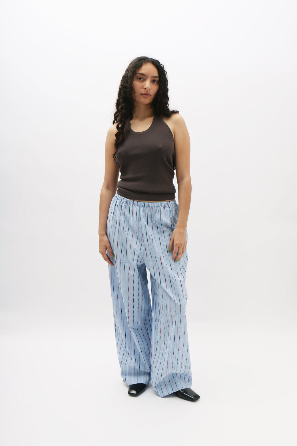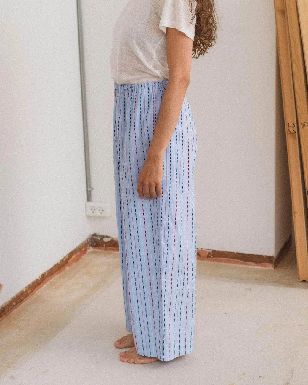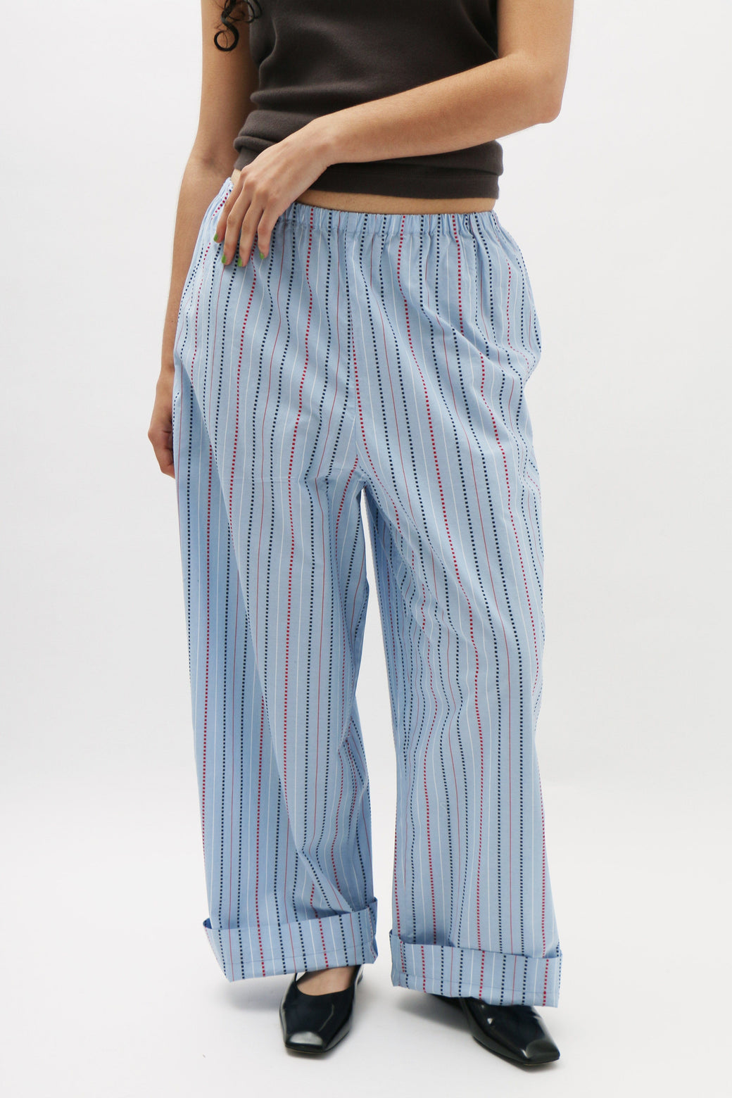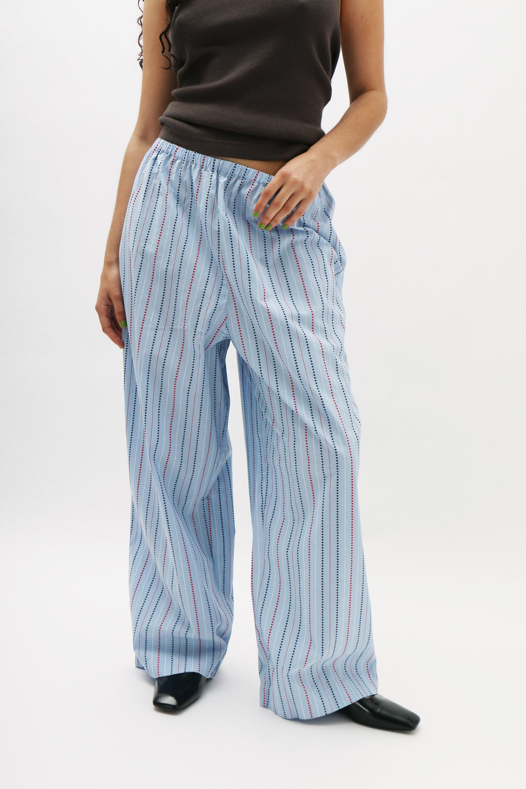 High-rise pants crafted from organic cotton poplin, featuring a comfortable elastic waistband for an easy, relaxed fit.