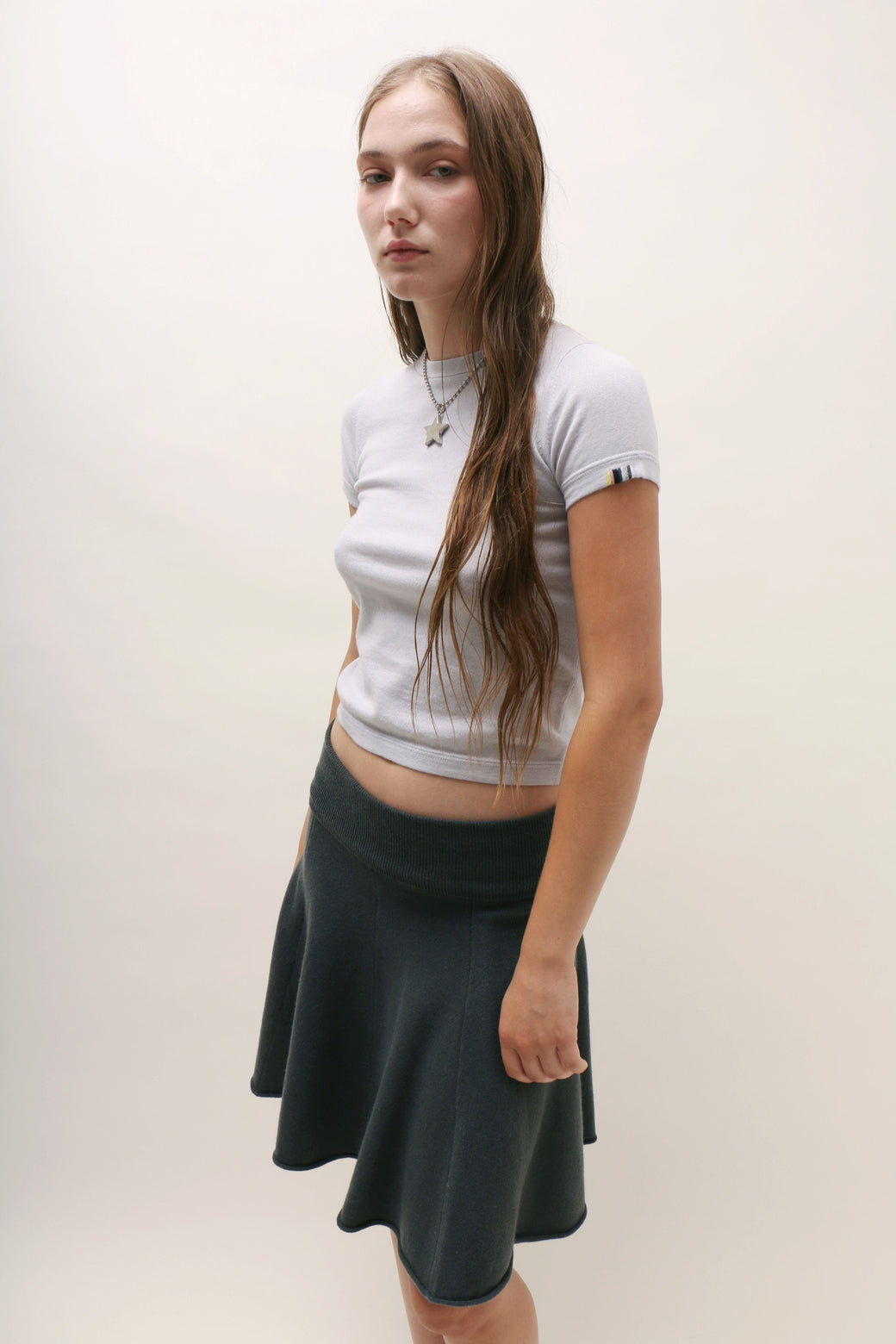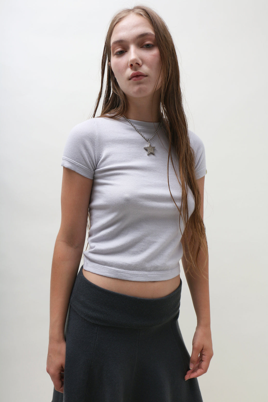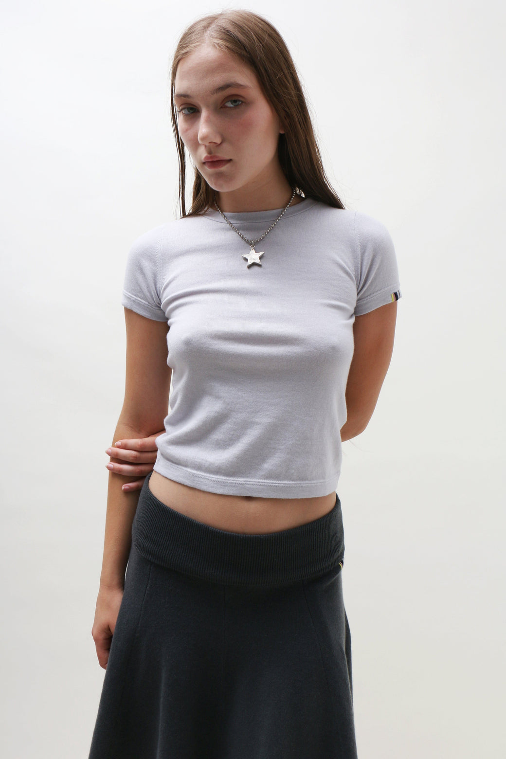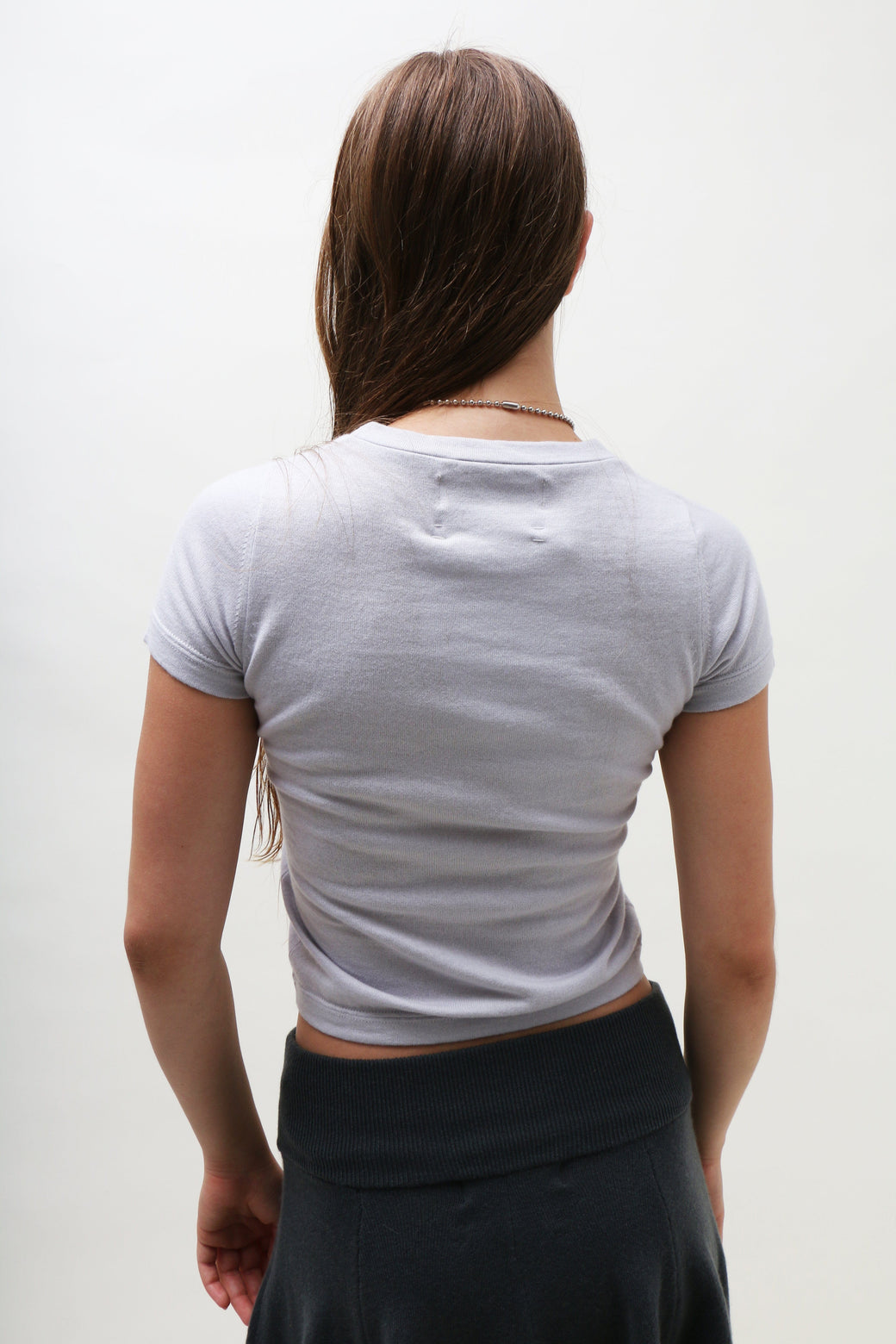 Ultra-fitted baby tee, Extreme Cashmere’s most tailored silhouette in their cotton-cashmere series. Soft and breathable, blending signature cashmere with structured cotton. Finished with flatlock stitching and a classic jersey neckline.