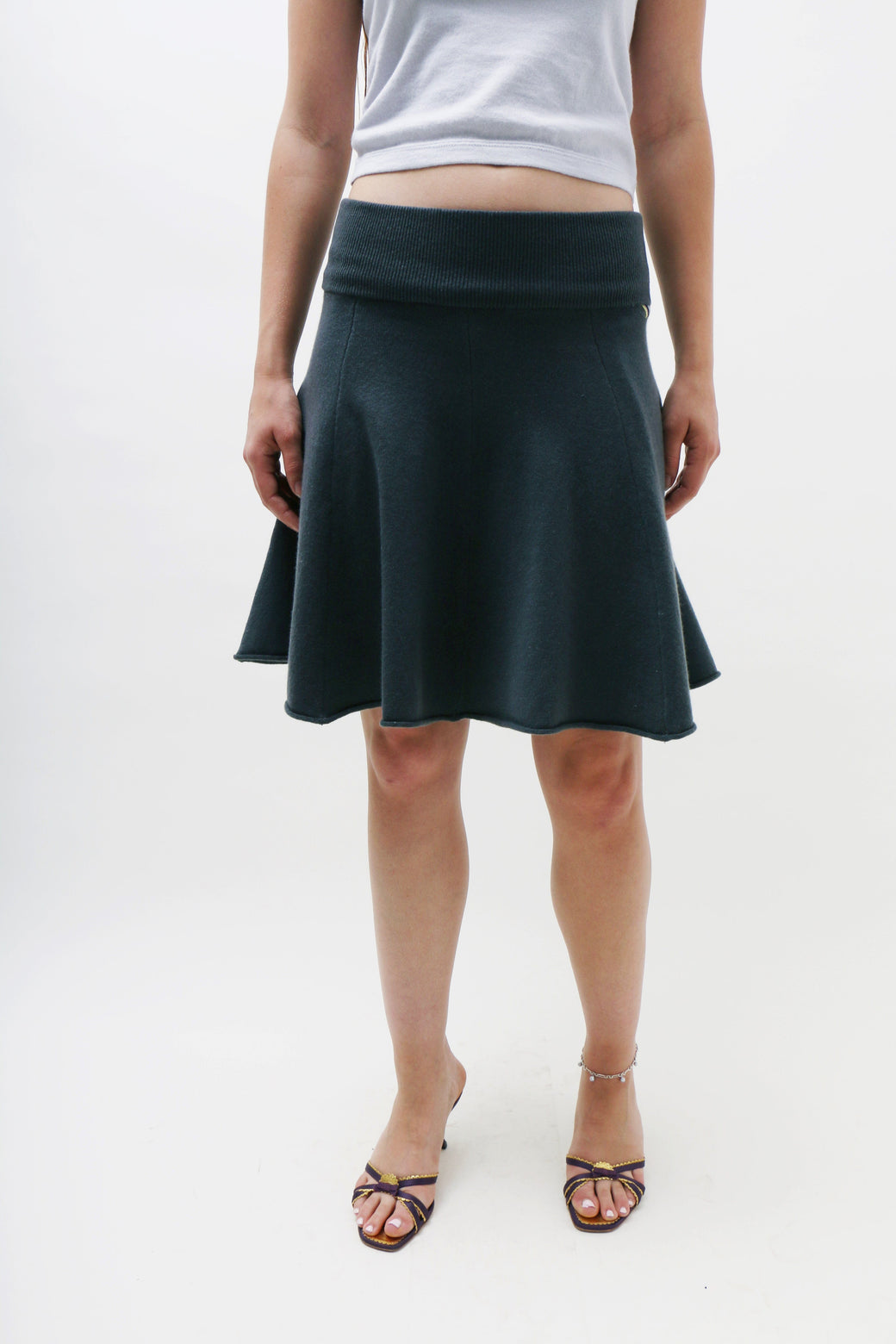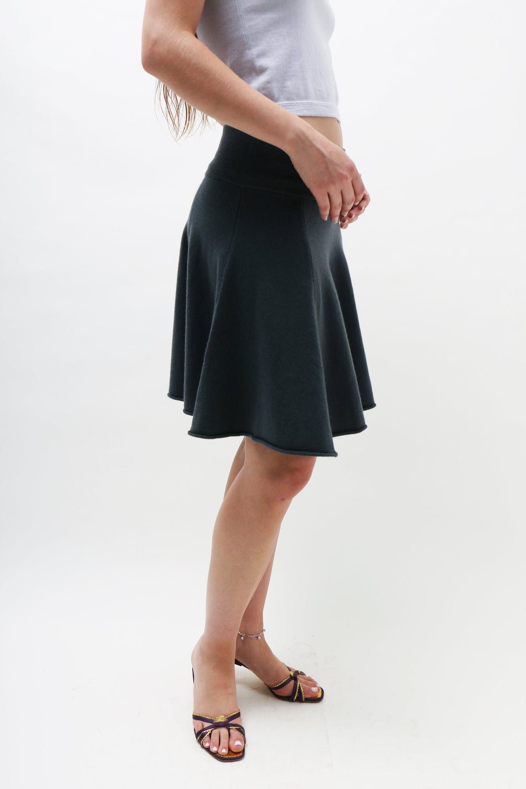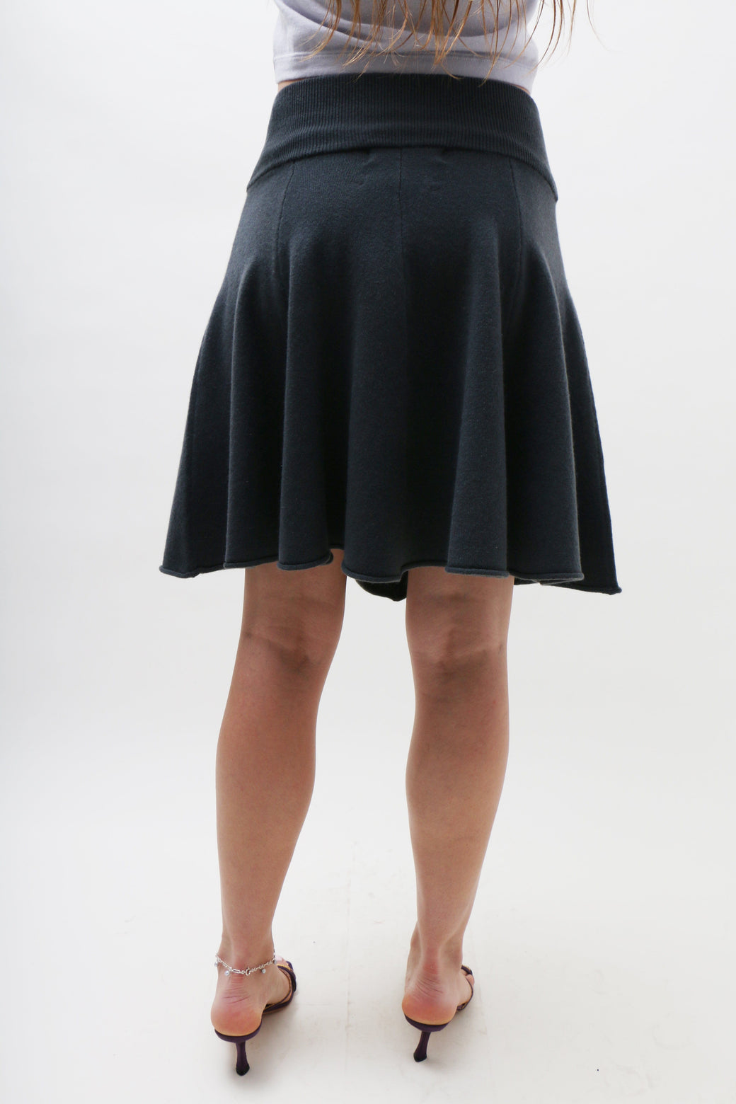 A playful cashmere mini skirt in gray, featuring a soft ribbed waistband that can be folded over and an internal drawcord for an adjustable fit.