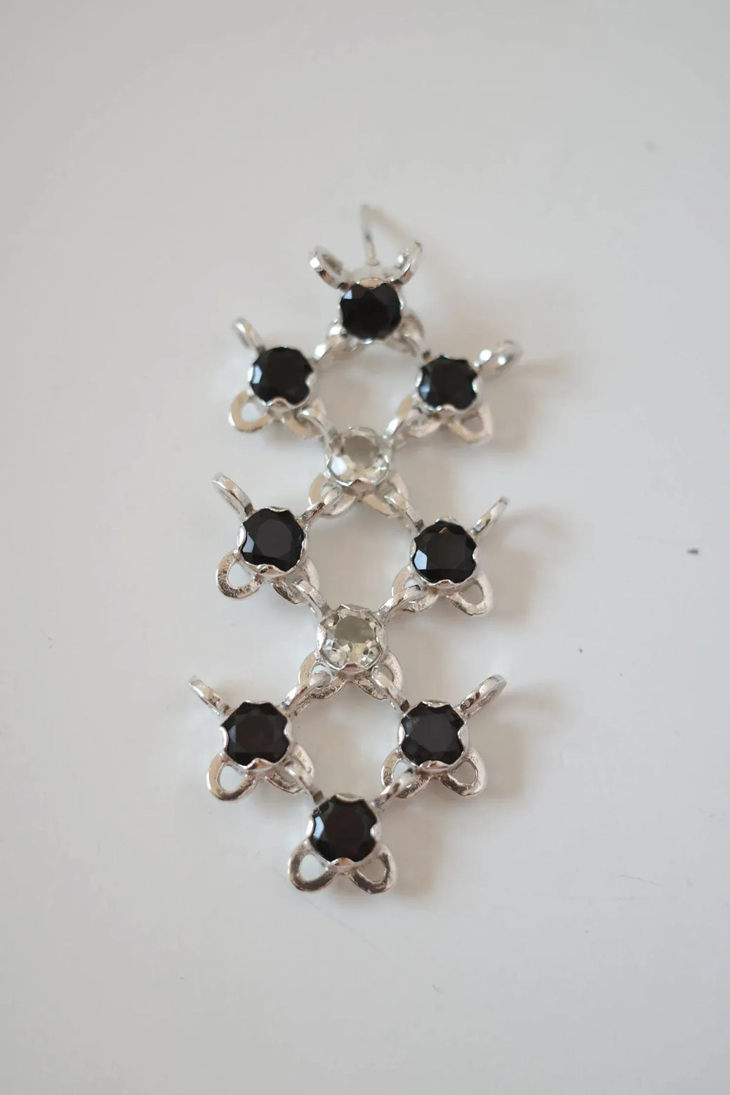 Material is 925 Silver with Black Onyx, Green Amethyst stones. Measures: 2 inches in length. Handmade in NYC.