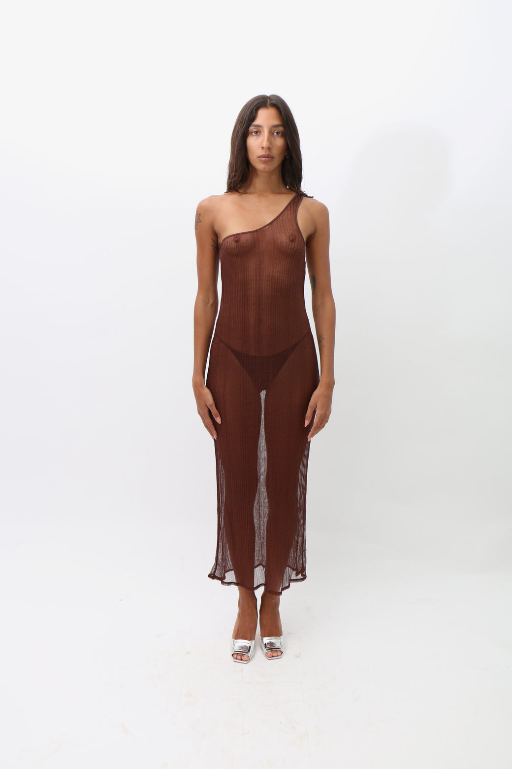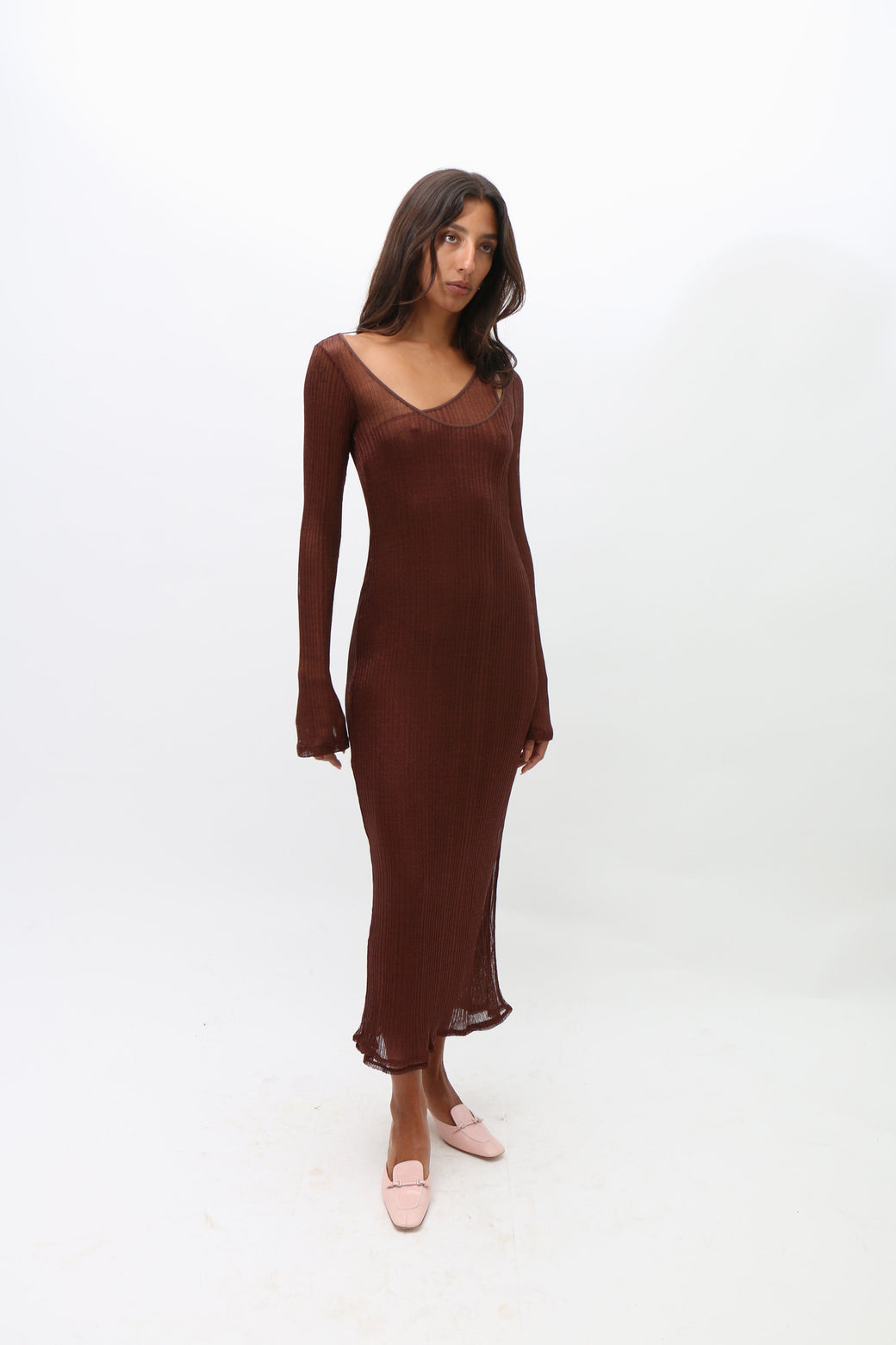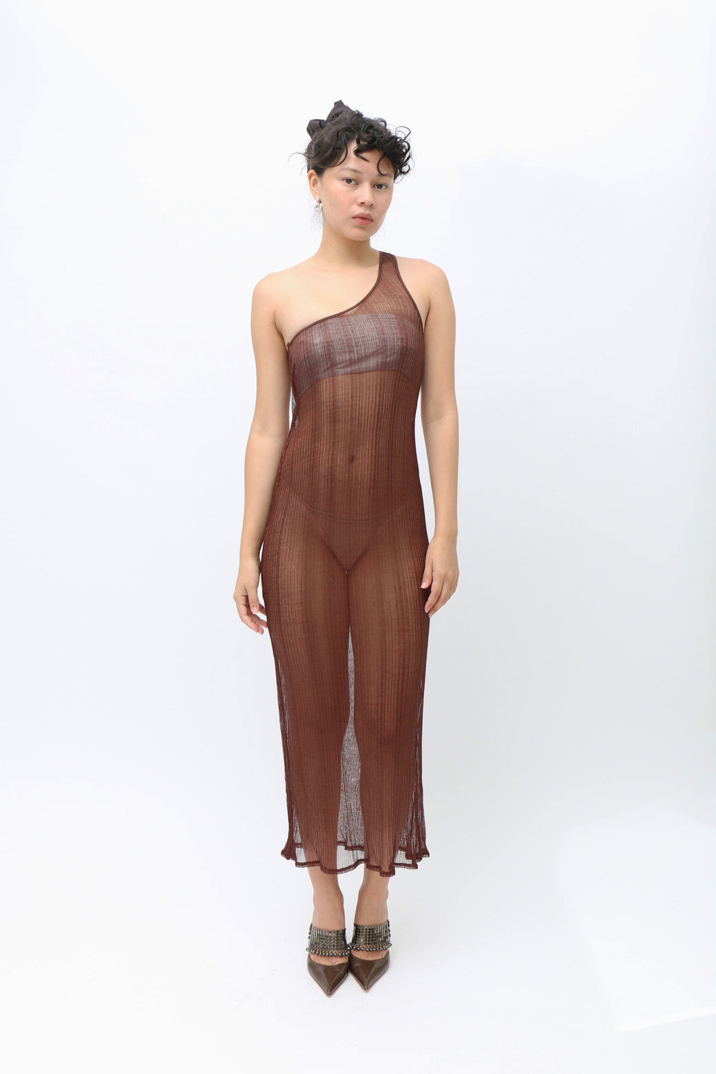 Ilana is 5'8" tall and measures 32” bust, 24” waist, and 36” hips and wears size S. Fabrication is 70% Viscose, 30% Polyester. Made in New York City. XS: Bust: 14” Waist: 13 ½” Hip: 16 ½” Length: 52” S: Bust: 14 ½” Waist: 14” Hip: 17” Length: 52” M: Bust:15 ½” Waist: 17” Hip: 19” Length: 52 ½” L: Bust: 17 ½” Waist: 17 ½” Hip: 19 ½” Length: 52 ½”