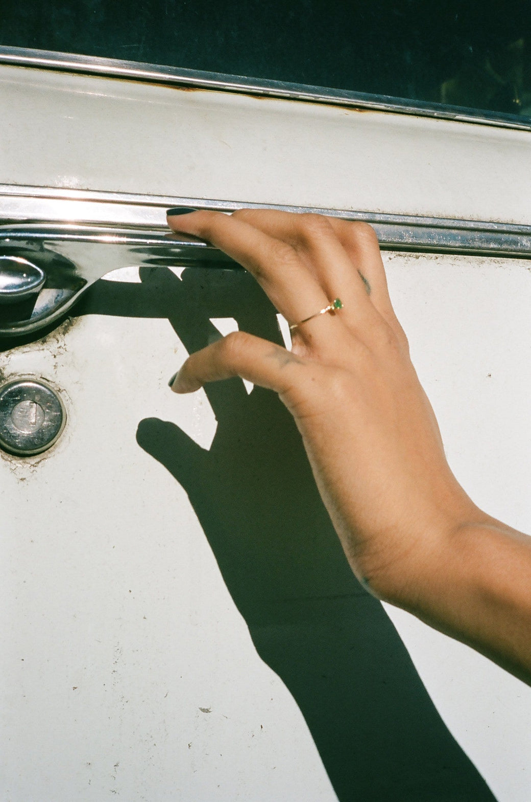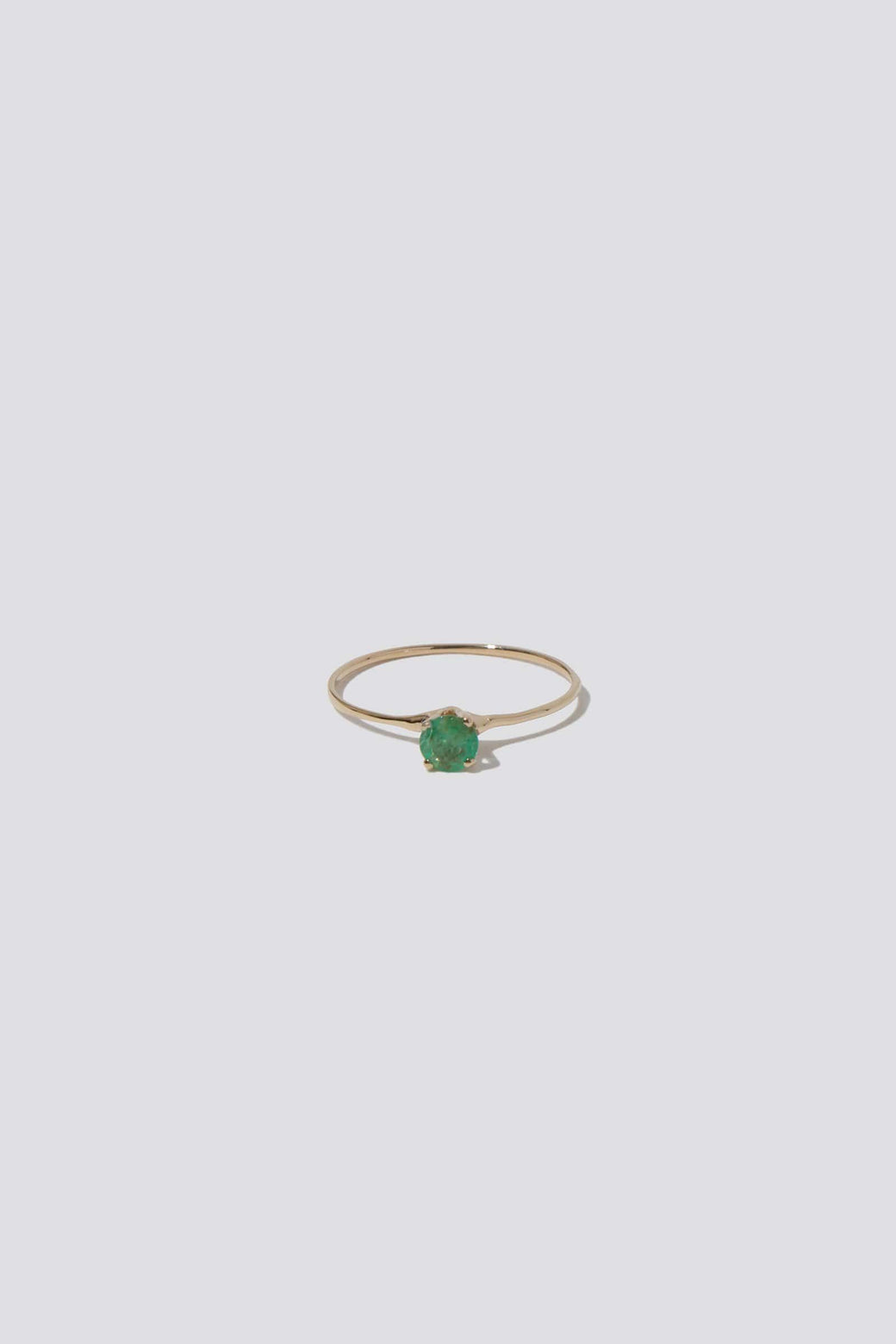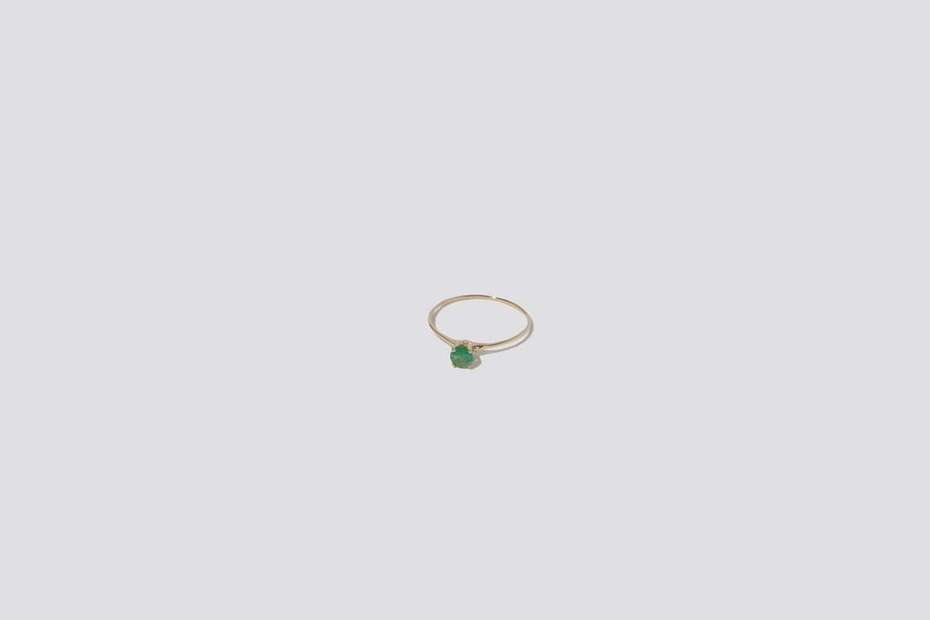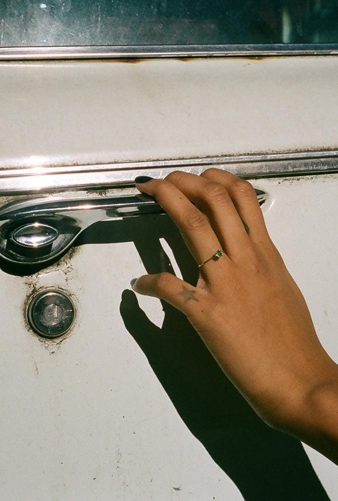 Minimal in design, this delicate princess ring features an emerald in a 14K yellow gold setting. Handmade in California.