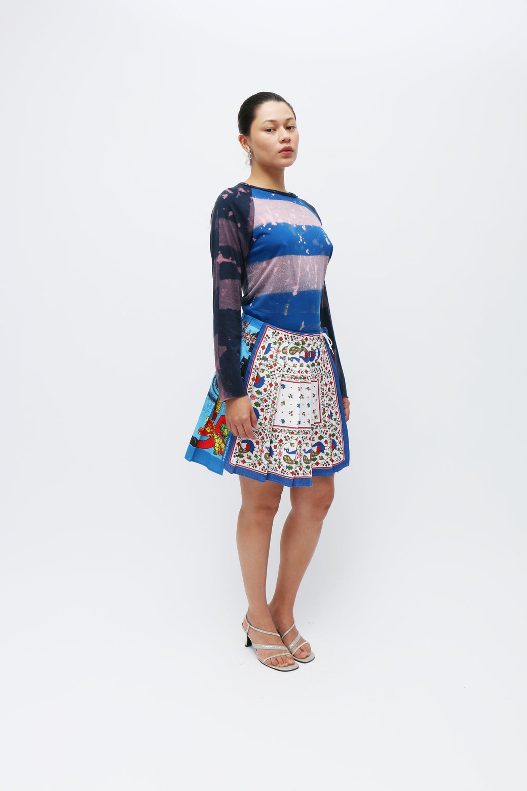 Images of skirt on the model are for references for fit and styling only. For the actual skirt pattern you will receive refer to the images of the skirt laid flat.