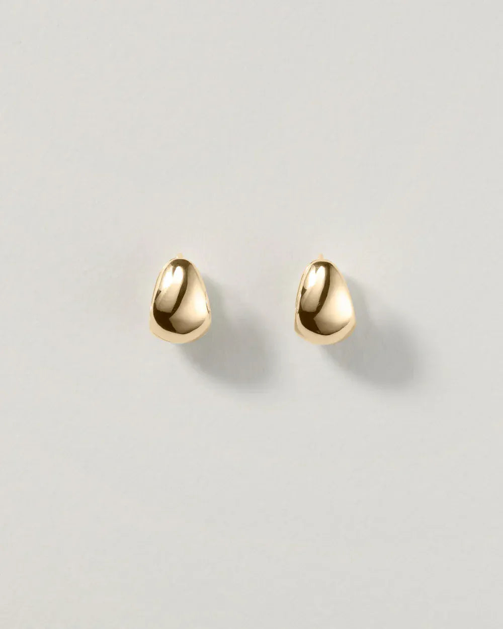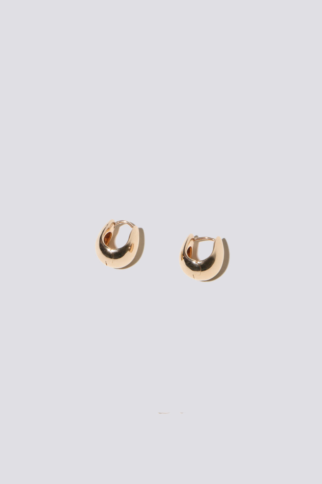 Pair of hinged gold hoops shaped with a soft, sloping curve. Designed as an effortless daily pair, offering just enough volume to create a refined, understated statement.