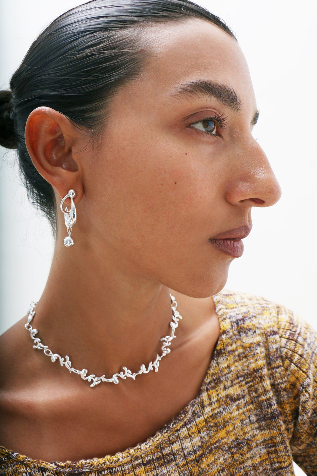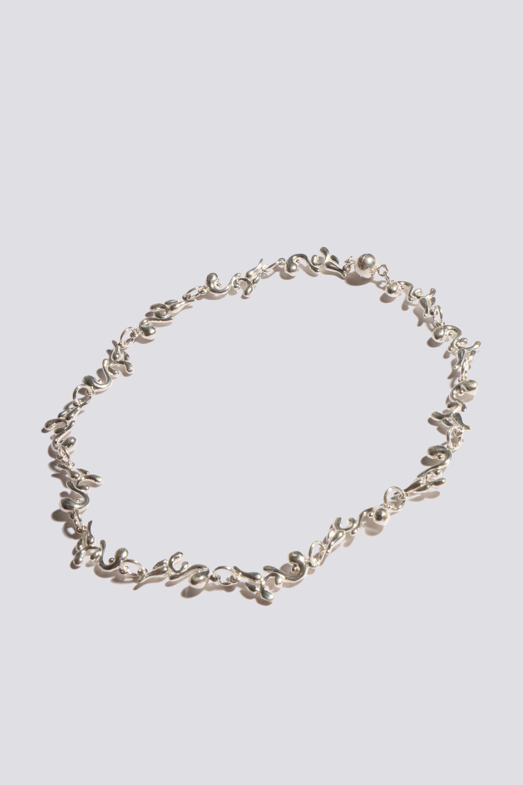 A handcrafted necklace in .925 sterling silver, featuring bold, fluid chain links with a wet-like, high-shine finish. Fastens at back with a discreet and secure magnetic closure.
