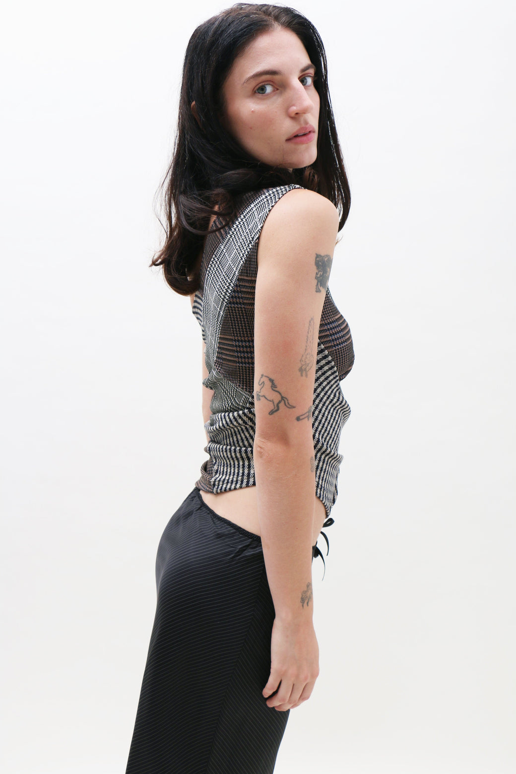Ilana is 5'8" tall and measures 32” bust, 24” waist, and 36” hips and wears size S. Made from deadstock fabrics. Fabrication is 61% Viscose, 36% Polyester, 3% Elastane. Designed in Sweden. Made in Bulgaria.