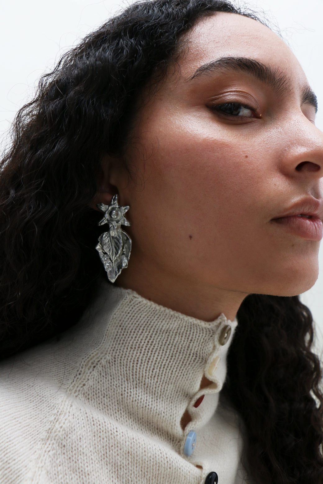 Handmade by jewelry artist Alizée Quitman, who specializes in molding techniques and enhancing old metal. Each piece is unique, with slight variations in shape and size.