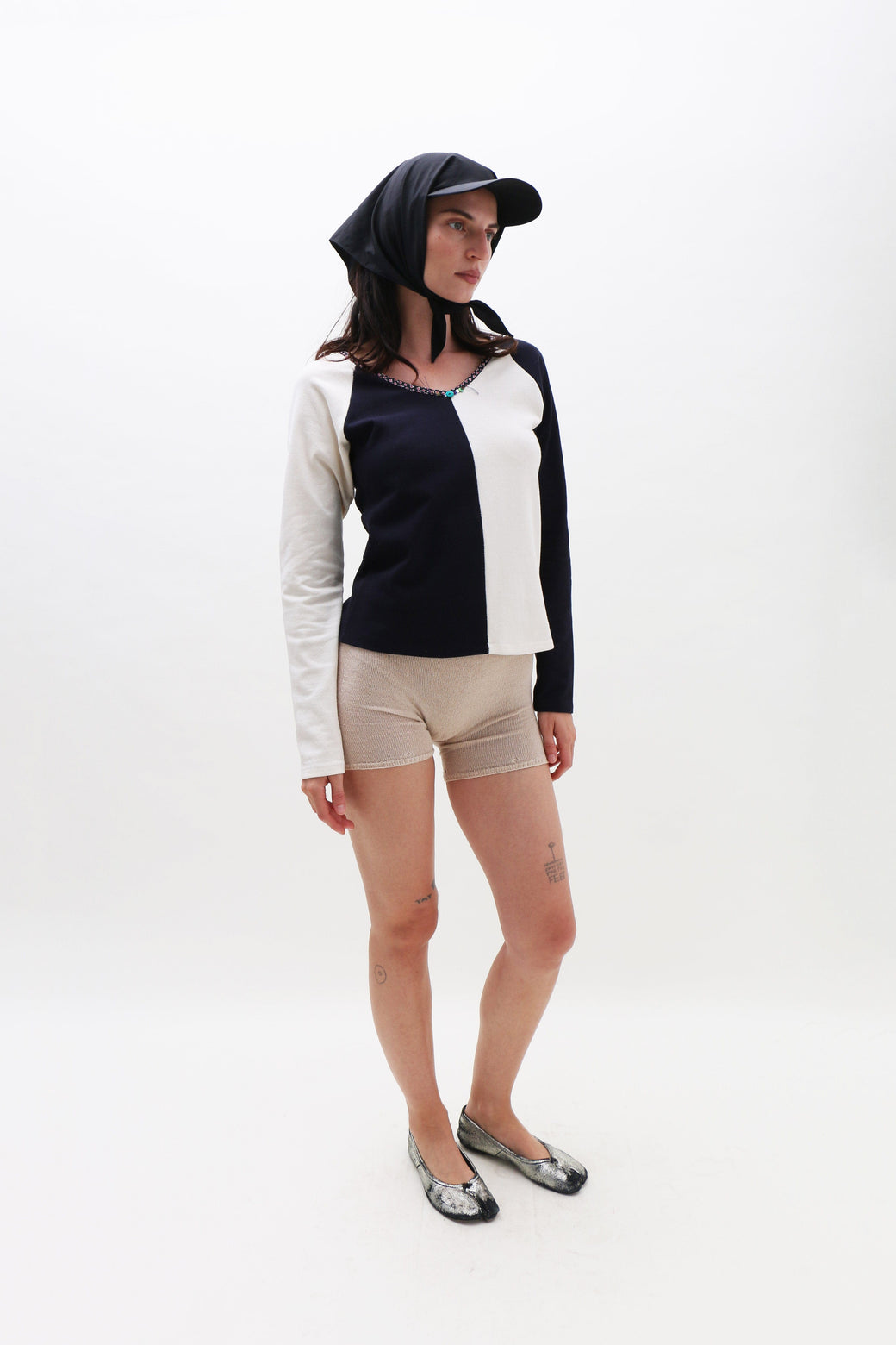 SC103 is a New York City label by Sophie Andes-Gascon and Claire McKinney. Designing for other brands after graduating from Pratt, it was only natural for their collaborative relationship to form their own label in 2019. All items are made in-house, with their four hands under one roof. Some items are made from pre-existing or hand-processed materials which may show slight signs of wear or variation. Any such discrepancies are considered unique characteristics of the materials used.
