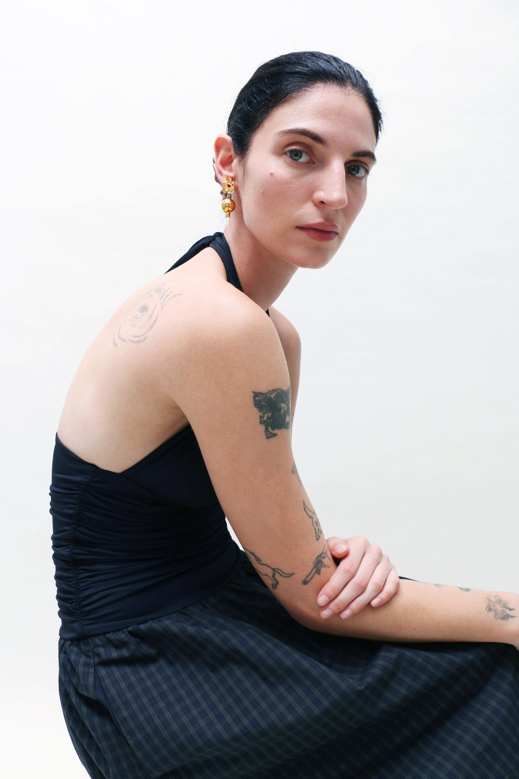 Mondo Mondo comes from the Italian translation meaning “world world,” chosen for its cinematic undertones. The designer behind the line, Natasha Ghosn, was initially trained in Mexico by local artisans which created a foundation for traditional craftsmanship. The line continues to evoke a look and mentality that can be described as ethereal, anthropological, archeological, funk, and otherworldly. As a self-taught perfumer, her objective is to provide original scent stories and feelings associated with scent that are wearable and timeless. Their small team is based in LA, California where the pieces are produced which continues to be a boundless source of inspiration for the line.