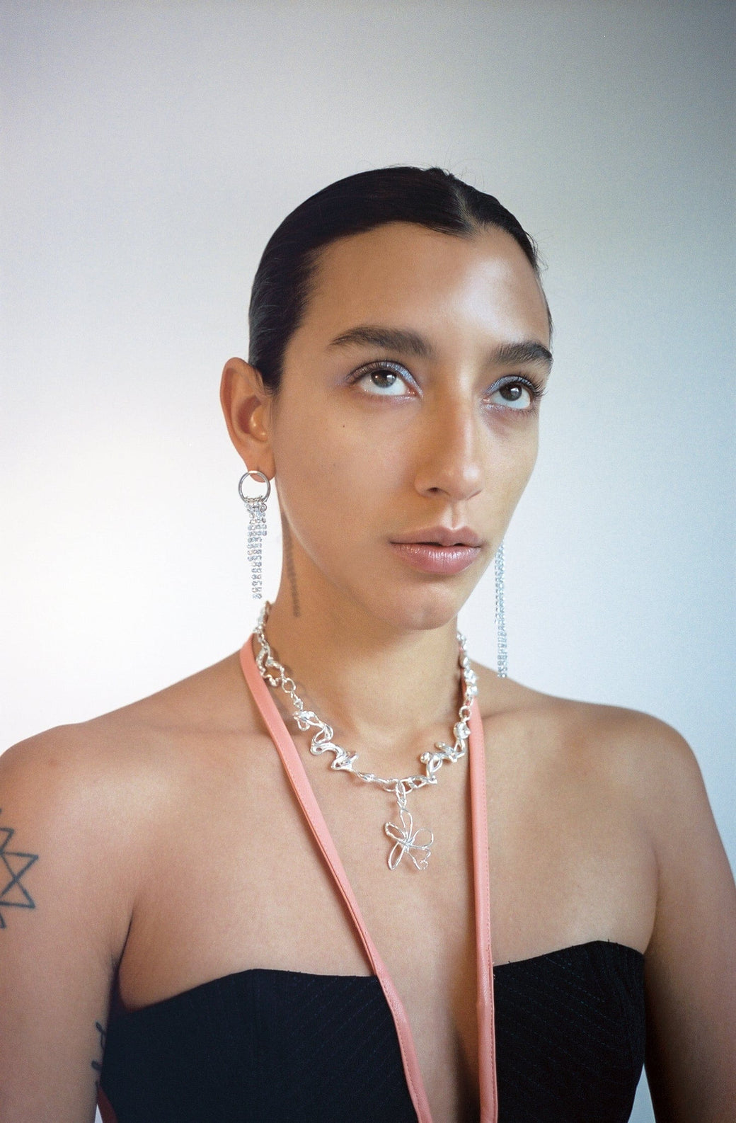 The Nassia Singlet features a halter neckline and top stitching on the bra cups. A hook on the neck strap allows for easy adjustment. The Nassia Singlet has an open-ended center back zip and fits true to size. Paris Georgia is a New Zealand-based design company with an emphasis on the female form and quality construction. Worn with the Justine Clenquet Shanon Earrings and the Subtle Blue Cocoon Track Pant.
