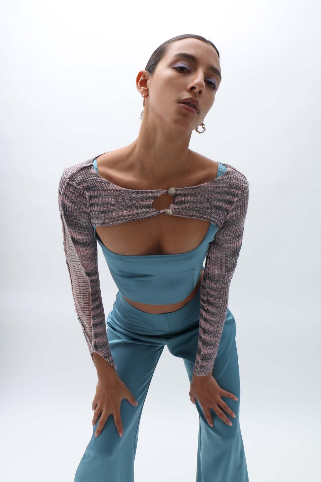 A Maimoun exclusive. Fitted and cropped. Open neck. Flattering and effortless it pairs perfectly with the Marnie Pants. Paris Georgia is a New Zealand-based design company with an emphasis on the female form and quality construction. Worn with the Sea Marnie Pants, MNZ Aegean Pablo Belt, and the Hannah Jewett Silver Mutant Cloud Earrings.