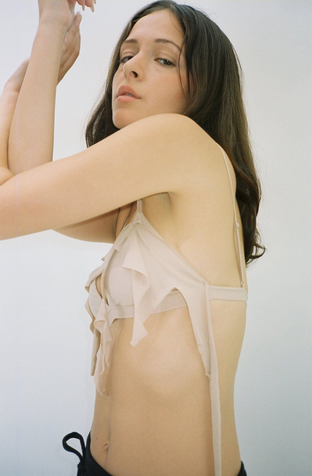 An incredible reinterpretation of Baserange's classci bamboo lyocell bra - the autem bra has thin adjustable straps, thin elastic trim at hem and is made completely using deadstock material.