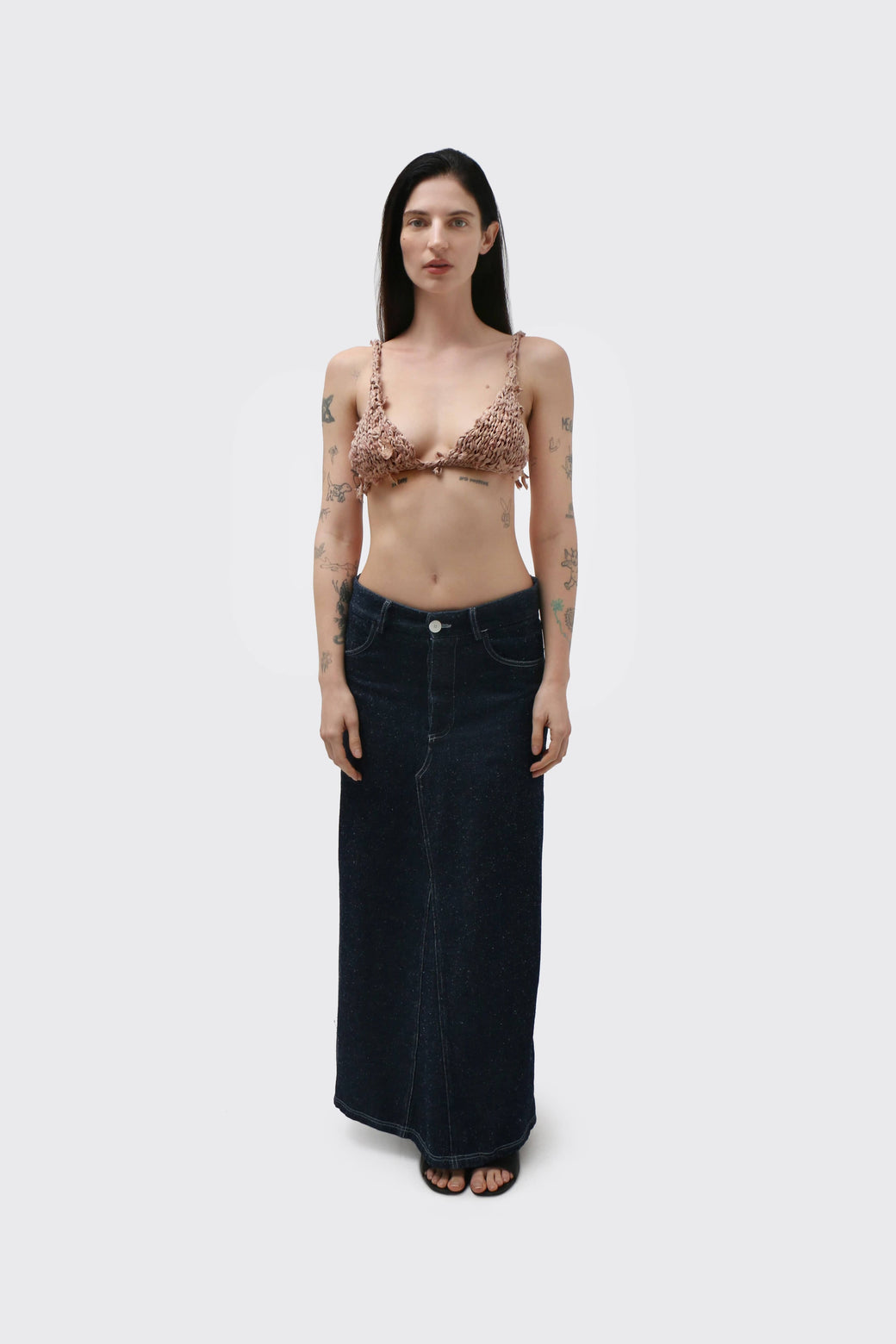 Ilana is 5'8" tall and measures 32” bust, 24” waist, and 36” hips. Designed to fit 34 A–C and S/M.
