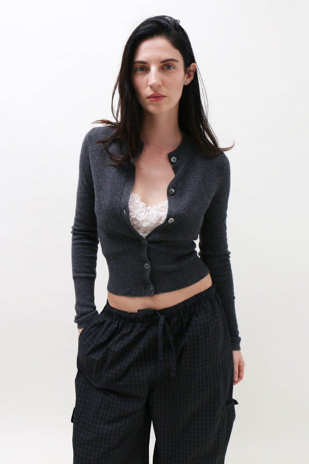 Ilana is 5'8" tall and measures 32” bust, 24” waist, and 36” hips and wears a size S. Fabrication is 100% Silk and 100% Borosilicate Glass Beads. Made in France.