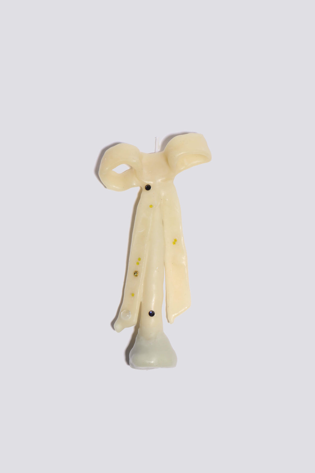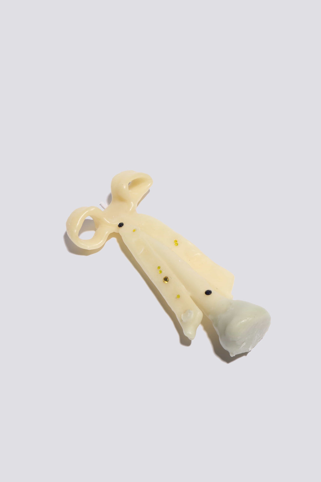 Meticulously crafted with a cream white wax finish adorned with yellow and gold rhinestones, the Electric Candle features a sculpted bow made from natural beeswax. Hand-poured and crafted in Providence, Rhode Island, its artistic design creates a captivating centerpiece that adds a touch of edge and elegance to any setting. Ideal for various occasions, whether as a unique cake topper, a centerpiece for a festive dinner, or to enhance the ambiance of a relaxing evening at home. Illuminate your space with sophistication and playfulness.